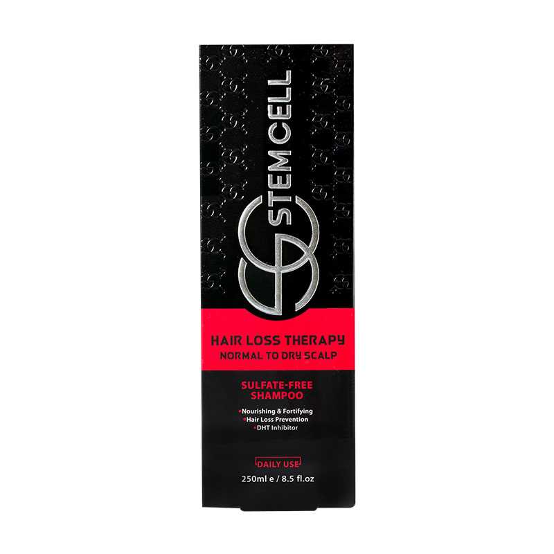 شامپو ضد ریزش مو نرمال تا خشک استم سل (Stem Cell)یک شامپوی درمانی فوق العاده که روند ریزش مو غیر ارثی را کاملآ متوقف و سرعت ریزش مو ارثی را بسیار کند میکند.در شامپو ضد ریزش استم سل از پپتایدهای تخصصی مثل استیل تتراپپتاید استفاده شده که با افزایش گردش خون مویرگی و افزایش فاز آناژن،محرک رشد مو بوده که هورمون ریزشDHTرو مهار و با کنترل التهاب مانع ریزش مو ناشی از التهاب میشود.عصاره گل تریفولیوم پراتنس موجود علاوه برخاصیت آنتی اکسیدانی با انرژی رسانی به ریشه مو باعث رویش دوباره مو و ضخیم شدن مو کرکی میشود.همچنین آپی ژنین در شامپو ضد ریزش استم سل (Stem Cell)با انبساط رگهای خونی کف سر تغذیه رسانی ریشه مو را بهتر میکند.عصاره بابونه با خاصیت ضدالتهابی و التیام بخشی اثر آنتی هیستامین و آنتی اکسیدان داشته همچنین عصاره آلوئه ورا،روغن زیتون و پرو ویتامین B5 در شامپو استم سل جزو مواد آبرسان عمقی کف سر و موهاست لذا شامپوی مناسب مصرف روزانه بدون احساس خشکی و خارش است.لازم به ذکر است تمامی محصولات استم سل فاقد سوفات،پارابن،دی اکسان و تمامی مواد مضر وقابل استفاده برا موهای کراتینه و ریباندینگ و... است.