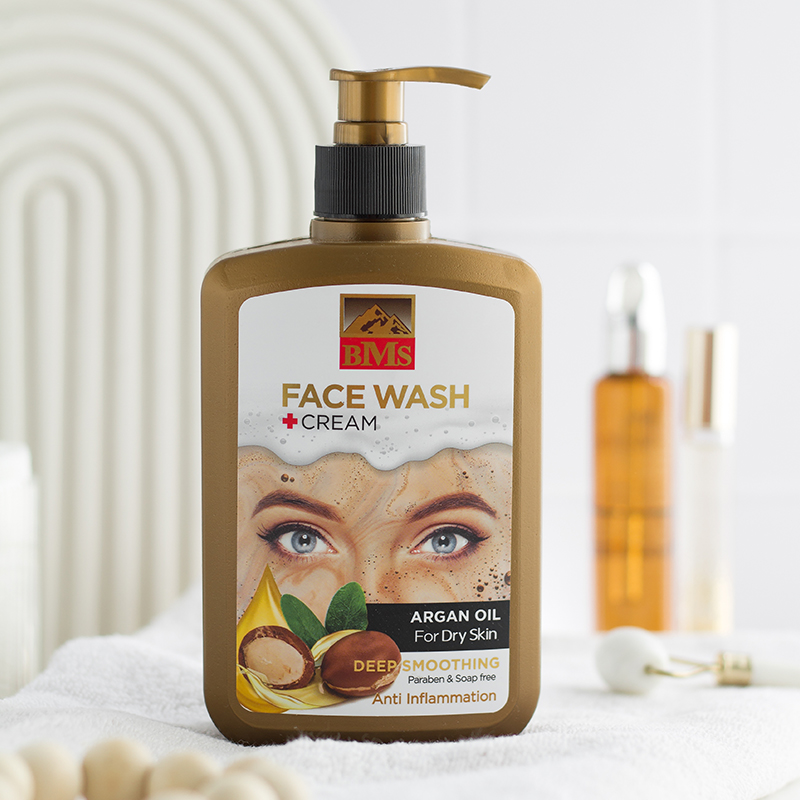 ژل-کرم شست و شوی صورت بی.ام.اس حاوی روغن آرگان: مناسب پوست های خشک. آبرسان، (نرم کننده و رفع التهابات پوستی) به دلیل داشتن مقادیر زیادی اسیدهای چرب غیر اشباع و اُمگا ۶،۳ و ۹ سبب بازگرداندن چربی از دست رفته پوست و تغذیه سلول های پوستی و ترمیم آن شده و هم چنین با تنظیم سبوم پوست از خارش و خشکی جلوگیری می کند. ژل-کرم شست و شوی صورت بی.ام.اس به دلیل داشتن فرمولاسیون ترکیبی از ژل و کرم در عین پاکسازی پوست و حذف آلودگی های پوستی از منافذ پوستی و غنی بودن روغن آرگان از آنتی اکسیدان ها، در حفظ نرمی پوست بسیار موثر است. این محصول فاقد الکل ، پارابن و مواد صابونی می باشد و با پوست حساس دور چشم سازگار می باشد