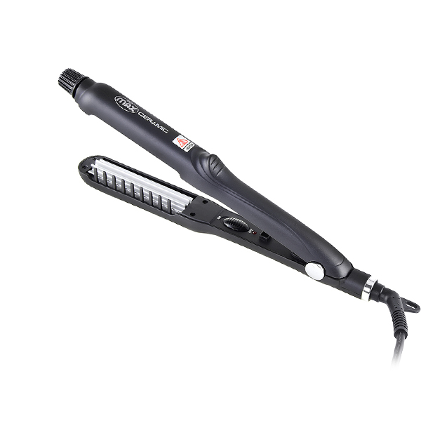 ویو سرامیک چرخشی پرومکس مدل 8311ez دستگاهی با طراحی جدید برای ایجاد ویو های ریز روی موها است. صفحات ویو کننده به شکلی طراحی شدهاند که بعد از بستن صفحات شانهها در هم فرو میروند و شکل موجدار صفحات روی مو ایجاد میشود. اما نکتهی قابلتوجه در این طراحی اهرم چرخانی است که در انتهای یکی از صفحات کار گذاشته شده است. با چرخاندن این اهرم صفحهی موجدار نیز میچرخد. به کمک این قابلیت میتوان بهراحتی موها را بین صفحات حرکت داد و موجهای یکنواختی را روی مو ایجاد کرد. روی صفحات ویو چرخشی پرومکس مدل 8311ez توسط سرامیک تورمالین پوشش داده شده است. سرامیک پخش دمای یکنواختی دارد و در تماس با مو آسیبی به ساقهی مو وارد نمیکند. تورمالین هم منبع طبیعی یونهای منفی است. یونهای آزادشده توسط تورمالین الکتریسیتهی ساکن روی مو را خنثی کرده و از وز شدگی موها کم میکند. علاوه بر این باعث میشود موها حالت نرمتر و درخشانتری داشته باشند. دکمهی روشن/خاموش دستگاه بین دو اهرم قرار دارد و در کنار آن نشانگر روشن بودن دستگاه دیده میشود. بعد از روشن کردن ویو سرامیک چرخشی پرومکس مدل 8311ez، دمای صفحات در مدتزمان 60 ثانیه به دمای 210 درجهی سانتیگراد میرسند. سیم برق دستگاه 3 متر طول داشته و در محل اتصال به بدنه حالت چرخشی دارد. قابلیت چرخش سیم از گره خوردن سیم جلوگیری کرده و کار کردن با دستگاه را آسانتر میکند. در انتهای سیم حلقهای برای آویزان کردن دستگاه وجود دارد. بهطور خلاصه ویو کننده پرومکس مدل 8311ez دارای صفحات چرخان موجدار، گرم شدن سریع تا دمای 210 درجهی سانتیگراد، پوشش سرامیک تورمالین روی صفحات با قابلیت تولید یون و سیم بلند چرخشی بوده و برای ایجاد موجهای ریز و منظم در موها مناسب است.