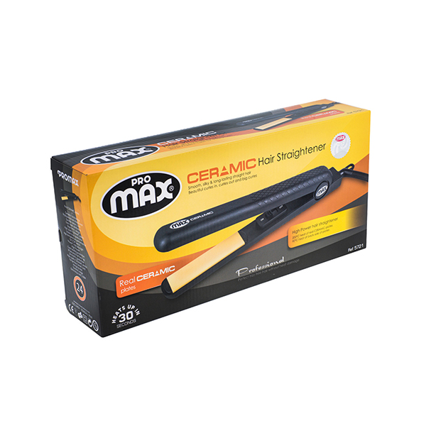 اتو مو حرفه ای سرامیک پرومکس مدل ۵۷۲۱ صفحات آن ۱۰۰٪سرامیک واقعی هستند که عرض صفحات آنها ۲۶ میلیمتر بوده و برای موهای بلند و متوسط مناسب است.سرامیکی بودن صفحات باعث میشود که حرارت به شکل یکنواختی در همهی قسمتها پخش شود و به مو آسیبی وارد نشود.با روشن کردن اتو مو تنها ۳۰ ثانیه طول میکشد تا صفحات داغ شوند. حداکثر دمایی که صفحات به آن میرسند ۲۰۰ درجهی سانتیگراد است.المنت حرارتی اتو مو به سیستم مجهز شده است که از بالا رفتن بیشازحد دما جلوگیری میکند تا به موها آسیبی وارد نشود.همچنین صفحات پشت آنها هم تا ۹۰ درجهی سانتیگراد گرم میشود.از این ویژگی میتوان برای ایجاد قوس در انتهای مو استفاده کرد.سیم برق اتو مو ۳ متر طول داشته و در محل اتصال به بدنه حالت چرخشی دارد. قابلیت چرخش سیم علاوه بر اینکه کار با دستگاه را آسانتر میکند،از گره خوردن و فرسودهشدن سیم جلوگیری میکند.در انتهای سیم حلقهای پلاستیکی وجود دارد که برای آویزان کردن اتو مو استفاده میشود.برای حمل و نگهداری بهتر سشوار یک کیف پارچهای همراه آن ارائه شده است که داخل آن حالتی نسوز دارد و میتوان اتو موی داغ را داخل آن گذاشت.