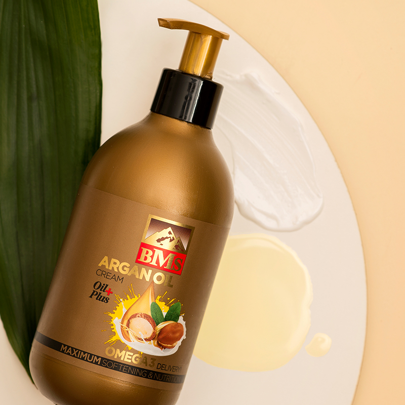 روغن آرگان که به طلای مایع معروف است به دلیل داشتن مقادیر زیادی اسیدهای چرب غیر اشباع و اُمگا ۶،۳ و ۹ باعث تغذیه سلول های پوستی و بازسازی و ترمیم آن شده و هم چنین با تنظیم ترشح چربی پوست از خارش و پوسته پوسته شدن جلوگیری کرده و باعث رفع آکنه می شود. بدلیل غنی بودن روغن آرگان از آنتی اکسیدان ها، این محصول در درمان ترک پا و حفظ نرمی پوست بسیار موثر است. کرم نرم کننده روغن آرگان بی.ام.اس، علاوه بر خاصیت مرطوب کنندگی و قدرت جذب بالا بر روی پوست، در درمان اگزما مفید بوده و می توان از آن برای بهبود جای بریدگی و سوختگی های سطحی،کاهش سوزش و التهاب پوست استفاده کرد.