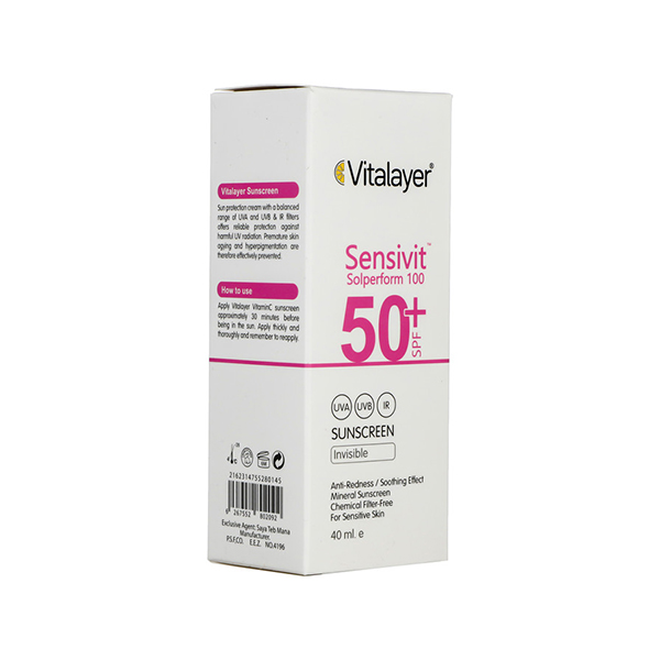 كرم ضد آفتاب سنسى ويت ويتالير(Vitalayer)فاقد انواع مواد حساسیت زا که اختصاصآ برای پوستها حساس و رزاسه فرموله شده که اثربخشی آن توسط متخصصین پوست تایید شده است.این ضد آفتاب دارای SPF+50است که برای محافظت از انواع پوستها روشن،گندمی و تیره کاربرد دارد.در تولید این ضد آفتاب از پتنت انحصاری Solperform 100 استفادهشده که موجب تسهیل پخش فیلترها ضد آفتاب بر روی پوست میشود،همچنین اثرگذاری فیلترها ضد آفتاب را تا 70% افزایش میدهد.هیالورونیک اسید از بهترین مواد موجود در كرم ضد آفتاب سنسى ويت ويتالير،با خاصیت آبرسانی فوق العاده قوی هست همچنین دکسپنتنول و آلانتوئین به کار رفته با خاصیت ضدالتهابی و ضد قرمزی،از پوست در برابر آفتابسوختگی و التهاب ناشی از آن حفاظت میکند و باعث ترمیم بافتها آسیب دیده میشوند همچنین وجود آلوئه ورا در این کرم علاوه بر خاصیت ضد التهابی به رطوبت رسانی پوست کمک شایانی میکند.كرم ضد آفتاب سنسى ويت ويتالير دارای بافتی سبک و مقاوم در برابر تعریق و رطوبت است(خصوصآ آب و هوای شرجی)همچنین فاقد چربی،پارابن و حتی فیلترها شیمیایی است!طوریکه خانم ها باردار هم قادر به استفاده از آن هستند.
