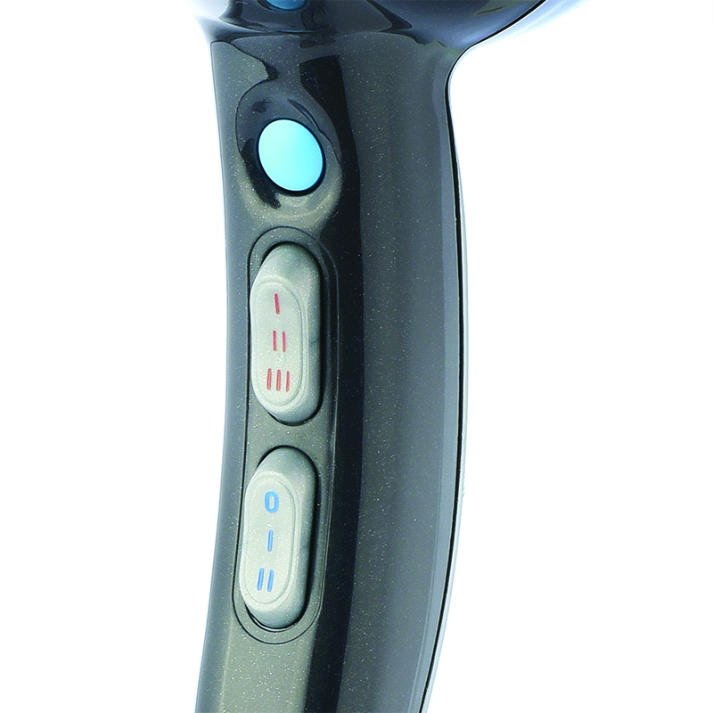 سشوار 7854 پرومکس یک سشوار پر قدرت آرایشگاهی ساخت ایتالیا است که نوع موتور آن AC می باشد که از قدرت و دوام بالایی برخوردار است.این سشوار دارای توان 2200 وات هست همچنین این محصول مجهز به تکنولوژی یون منفی و المنت سرامیکی تورمالین بوده که با آزاد کردن یونهای منفی و تقویت آن باعث خنثی کردن الکتریسیته ساکن موها و رفع وزی مو میشود که این خاصیت زمان خشک کردن موها رو کاهش میدهد و مو سالم تر می ماند.استفاده از دکمه باد سرد (کول شات)در سشوار 7854 پرومکس بعد از براشینگ موها باعث تثبیت و ماندگاری بهتر حالت موها شده.همچنین این سشوار دارای سه حالت تنظیم باد، سه حالت تنظیم حرارت و دو سری متمرکز کننده هوا هست.سیم بلند 3 متری و نیز حلقه آویز سشوار و کابل گردان با چرخش ۳۶۰ درجه از دیگر مواردی است که کاربری مدل 7854 پرومکس را در عین حرفه ای بودن،آسان تر کرده است همچنین قابلیت چرخش ۳۶۰ درجه کابل از فرسودگی کابل در نقطه اتصال جلوگیری خواهد کرد.سشوار 7854 پرومکس دارای فیلتر قابل جدا شدن و شستشو هست که در صورت وجود پرز و گرد و غبار جهت حفظ عملکرد بهتر و عمر مفید دستگاه میتوان فیلتر را به راحتی باز کرد وشست.